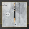 De Parker IM-rollerballpen is gestroomlijnd, glanzend en professioneel ineen, en is de ideale partner met onbeperkte mogelijkheden. De slanke, taps toelopende vormgeving sluit naadloos aan bij de innovatieve ontwerpen om een opvallend statement te maken. Deze PARKER pen is een gedenkwaardig geschenk met een intens gezandstraalde zwarte aluminium behuizing met een tijdloos grafisch patroon, geaccentueerd met een goud afgewerkte trim. De ongelofelijk soepele rollerballpunt zorgt voor vloeiend schrijven zonder verspringen, zodat u overal waar u schrijft opvallende sporen achterlaat. Voor gebruik met QUINK rollerball inktpatronen. Elk detail is verfijnd om een schrijfervaring te bieden die tegelijkertijd betrouwbaar is en trouw aan meer dan 125 jaar PARKER merkerfgoed.
