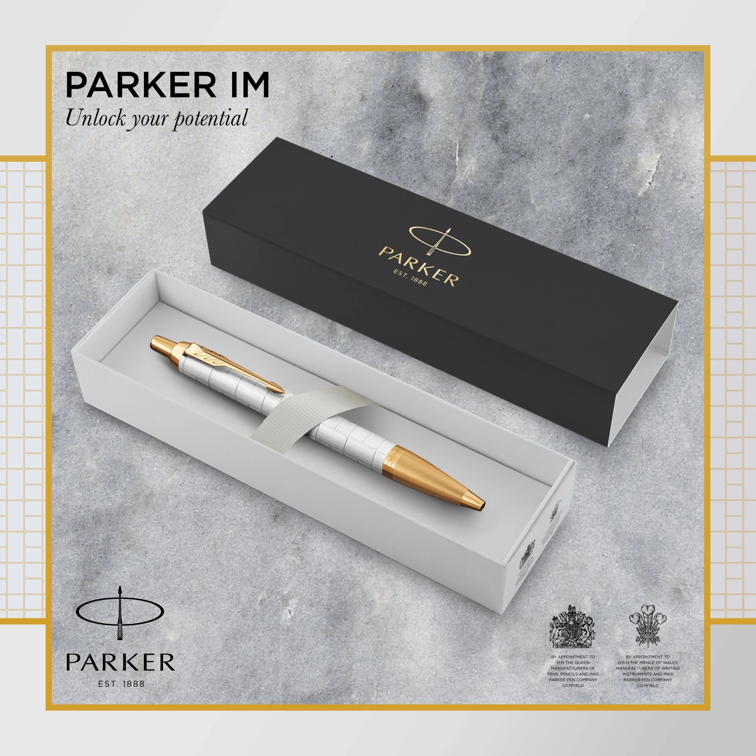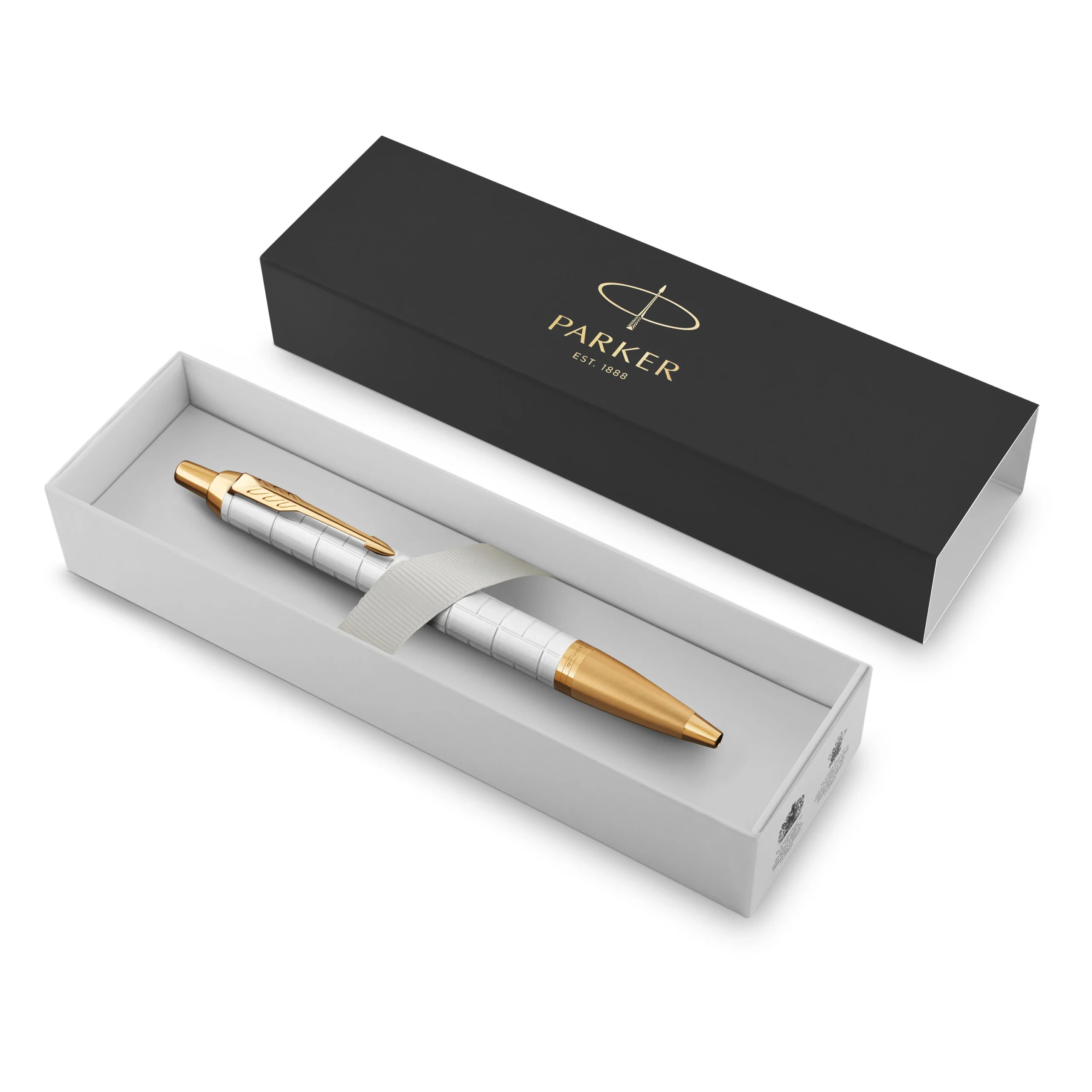 De PARKER IM Premium-balpen is stijlvol, gepolijst en professioneel en een ideale partner met onbegrensde mogelijkheden. Het opvallende slanke model vult de iconische maar moderne ontwerpen naadloos aan. Deze PARKER-pen is een gedenkwaardig geschenk, vervaardigd met een elegante pearl gelakte behuizing geëtst in een asymmetrisch vierkant motief, geaccentueerd met een gouden afwerking. De balpenpunt en QuinkFlow-inkt zorgen met een zelfverzekerde klik voor een uitzonderlijk soepele en betrouwbare schrijfervaring. Van klik tot punt, elk verfijnd detail levert een betrouwbare en vertrouwde schrijfervaring, verankerd in meer dan 130 jaar erfgoed van het PARKER-merk. Te gebruiken met QUINK-balpen- en -gelpennavullingen om al uw gedachten briljant vast te leggen.